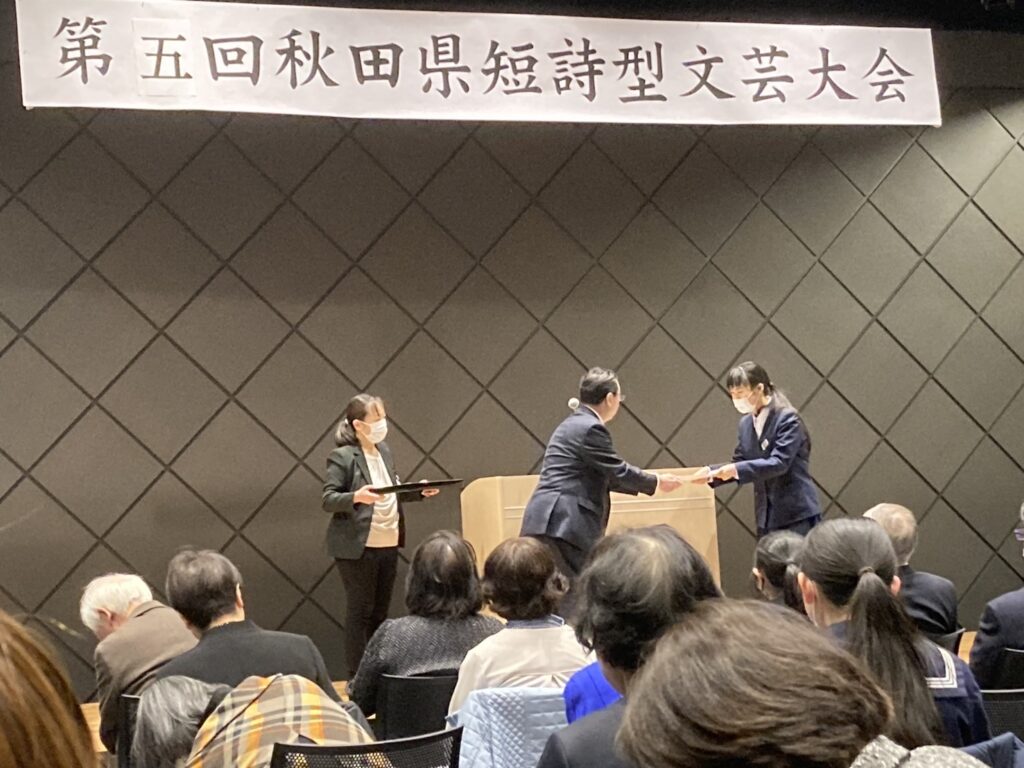 第五回秋田県短詩型文芸大会において、本校の松橋さんの短歌が第三席と第四席に選ばれました。